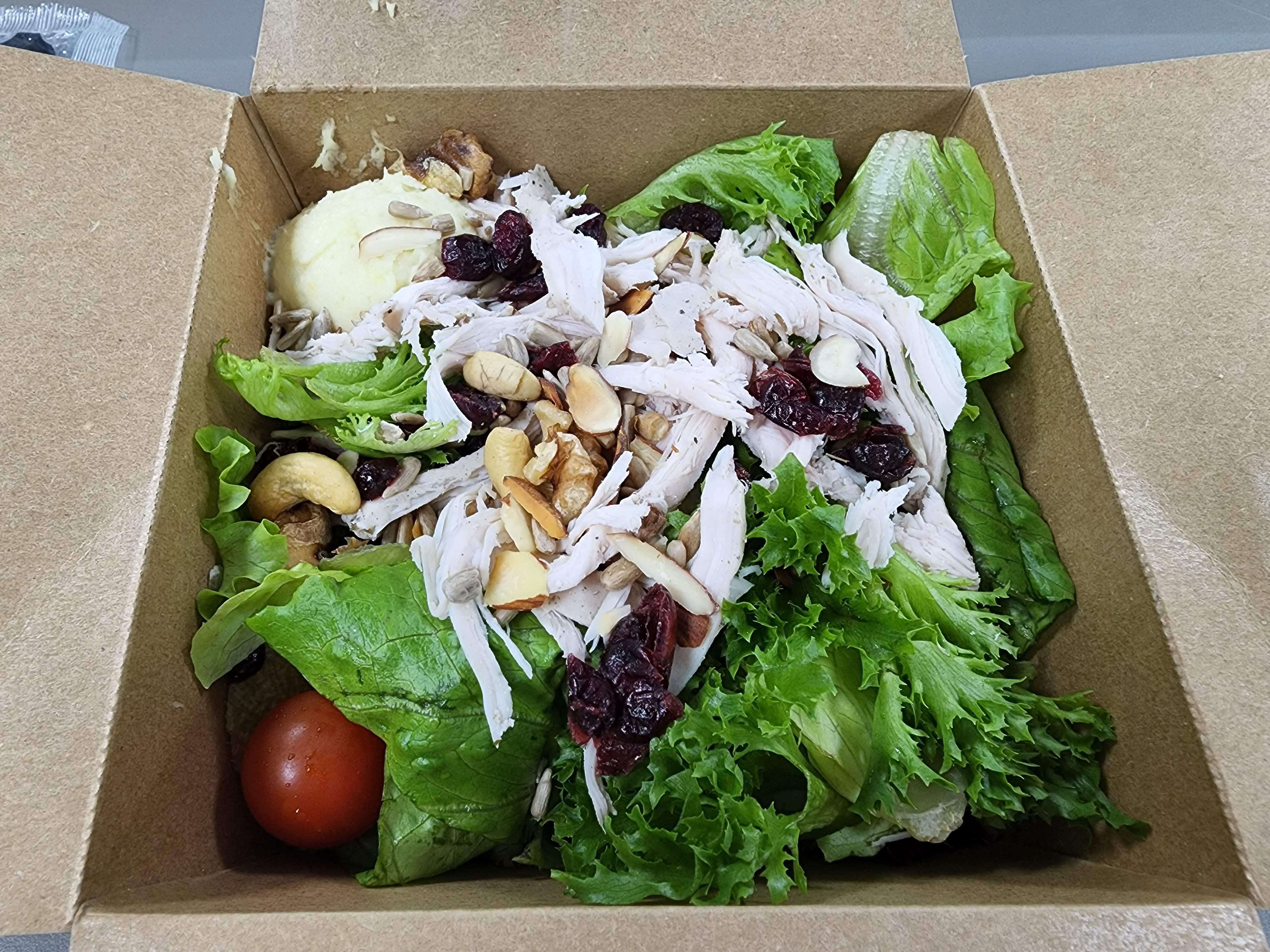 그래서 어떻게 했느냐? 바로 샐러디로 메뉴를 갈아탔다. 샐러드는 그냥 바로 버리면 되는 곳에 담겨 오기 때문에 번거로운 작업이 없어서다. 딱 그 이유로 시작했는데, 의외로 아주 맛있단 말이지.