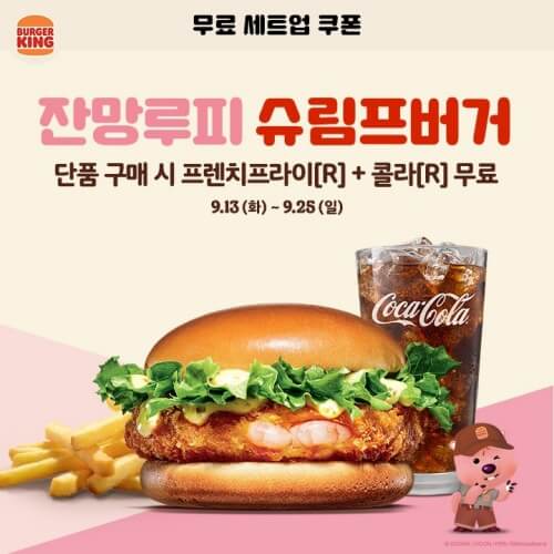 슈림프버거는 세트업 쿠폰이 빠지지 않고 계속해서 나오고 있습니다. 매장에서 드실 때 정가로 먹으면 엄청나게 아깝겠네요. 새콤한 레몬에 달콤한 벌꿀을 넣은 루피 특제소스를 사용한 버거입니다.