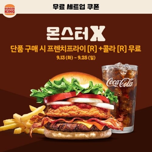 기타 행사로는 드라이브스루에서 몬스터와퍼를 구매하시면 무료 세트업 행사를 하고 있습니다.