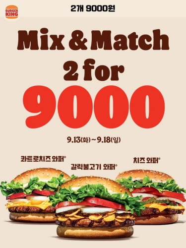 버거킹 행사 소식 정리합니다. 버거킹 9월행사 중 9월 13일부터 18일까지 진행되는 행사들이고 버거킹 카카오톡 친구 채널에서 정기적으로 보내주는 내용을 그대로 정리했을 뿐입니다.