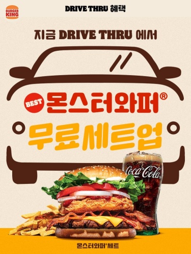 기타 행사로는 드라이브스루에서 몬스터와퍼를 구매하시면 무료 세트업 행사를 하고 있습니다.