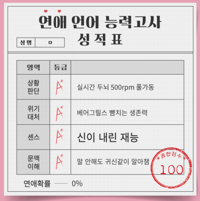그래서 연애 언어 능력 고사가 요즘 핫하네요.