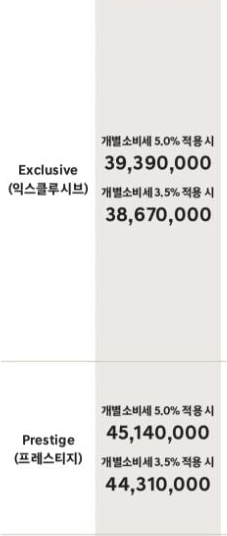 그 외에도 많이 있는데, 가격표에서 기본 품목에 들어가 있는 항목 중에 '굵은 폰트'로 되어 있는 사양들이 그 대상이라고 합니다.